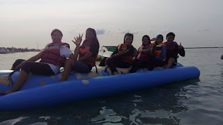 abis itu, pada main banana boat. tapi gue kagak ikut bray. abis celana gewe buat tar malem acara inti.
